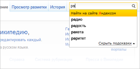 Поисковые подсказки для сайтов "Поисковые подсказки для сайтов*" в Яндекс.Баре добавляют подсказки к поисковым строкам на многие популярные сайты Рунета. "Подсказки" покажут популярные поисковые запросы, запомнят историю поисков для каждого сайта, исправят опечатки и ввод при неправильной раскладке. Чтобы искать с помощью поисковой системы сайта, нажмите на кнопку «Найти» на сайте; чтобы искать Яндексом — нажмите на поисковую подсказку. * Поисковые подсказки доступны при установке соответствующей кнопки из Библиотеки Яндекс.Бара. | ![]() |